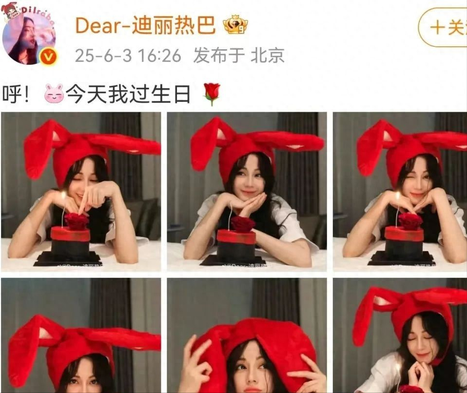 近日迪丽热巴迎来 33 岁生日,一组 “小红兔” 造型的生日照萌翻全网,相关话题迅速登上热搜。